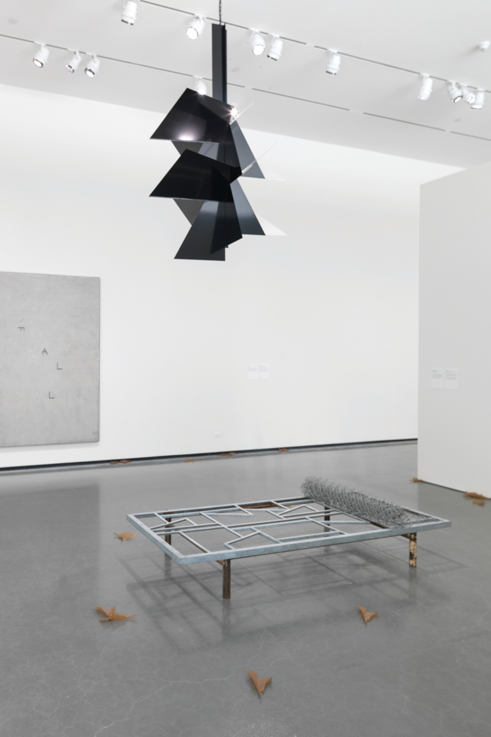The RISD Museum hosted ”Martin Boyce: When Now is Night” at the Chace Gallery. Boyce reexamined design classics and used innovative materials to create new interactions with exhibition visitors. The show included a large web structure built from fluorescent lights, collections of sheet metal masks and composite material sculptures. I worked closely with museum staff to design artwork location plans and technical construction drawings.