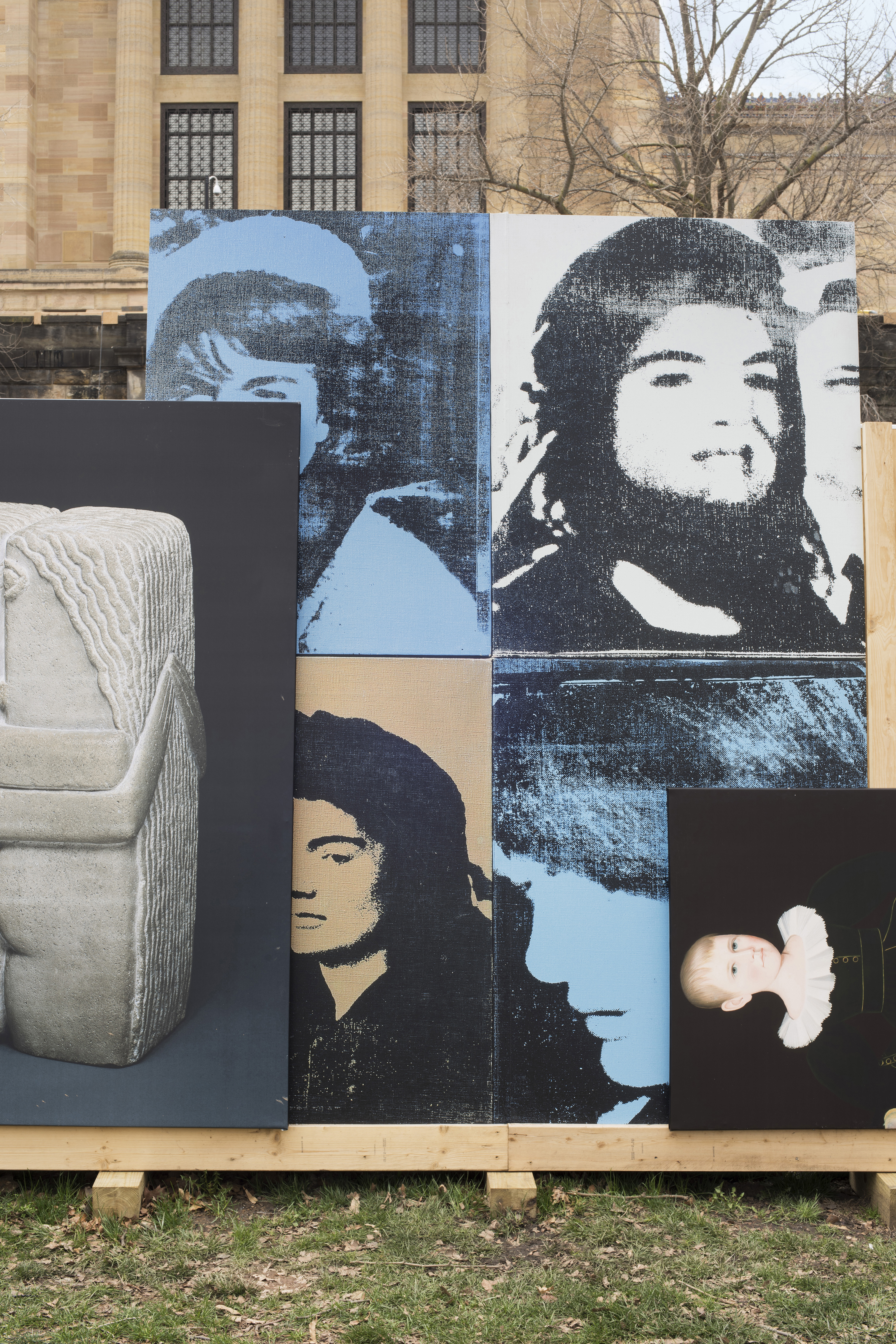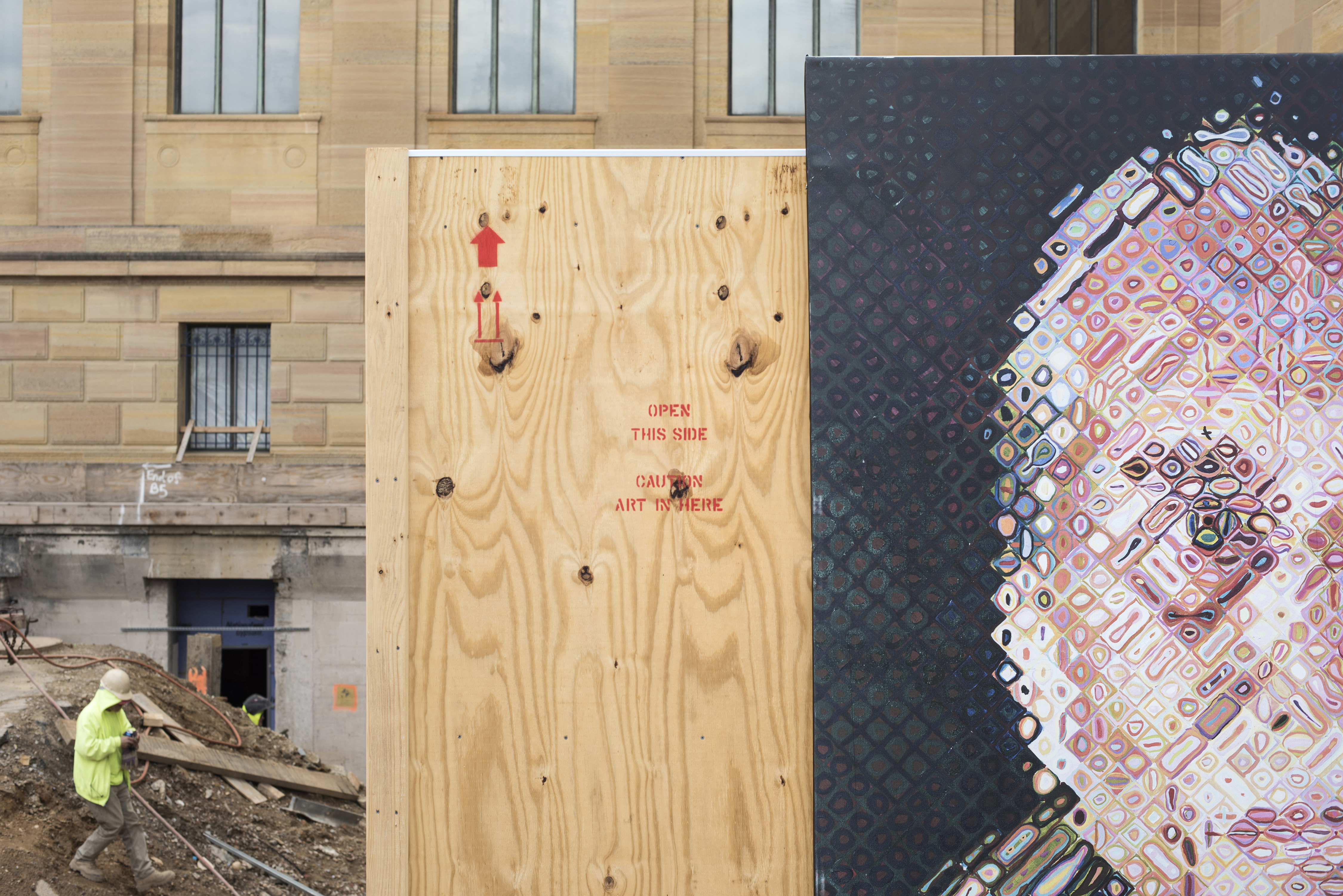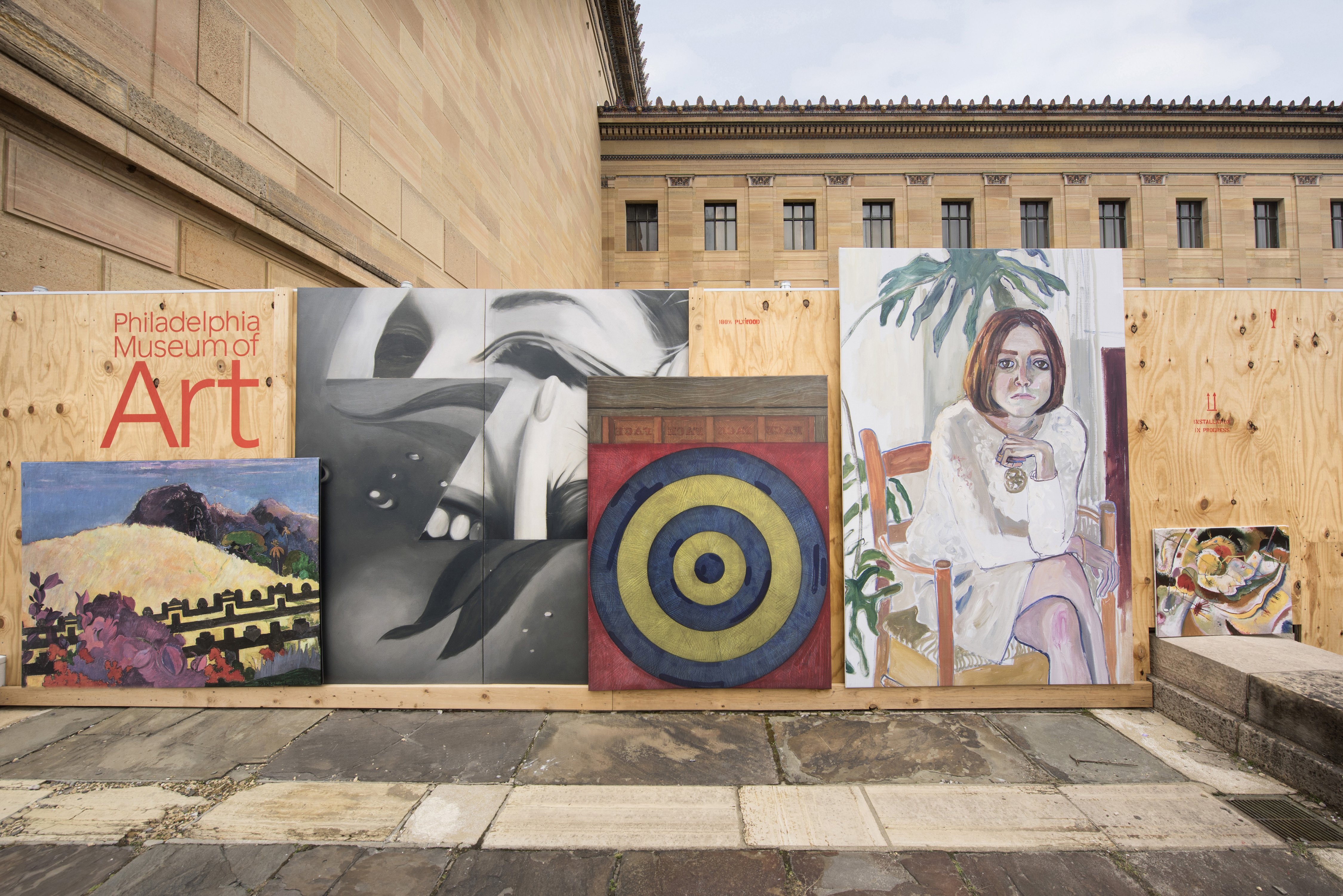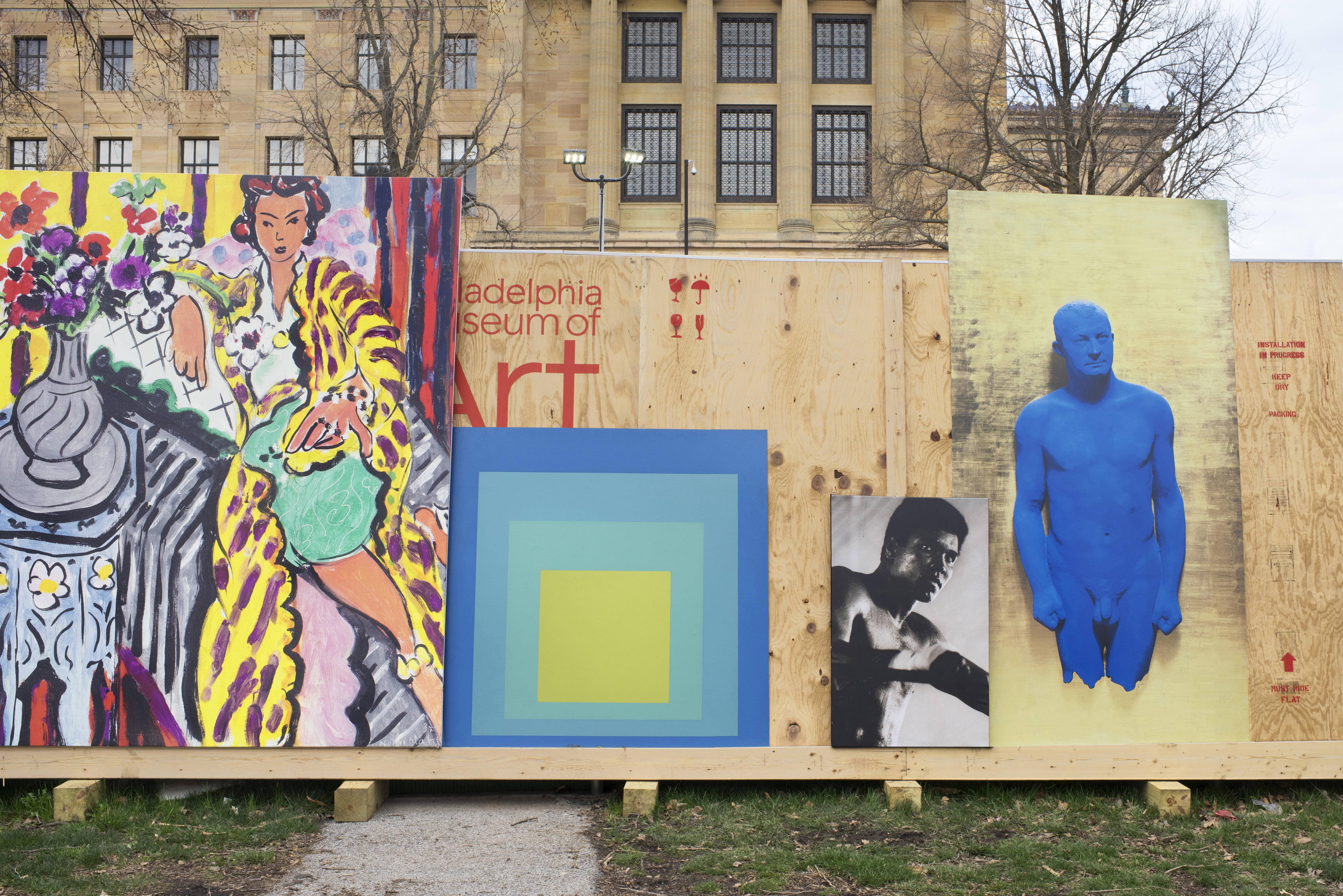 As a member of Paula Scher’s Pentagram team, I created a construction hoarding system to surround the massive Frank Gehry renovation at the Philadelphia Museum of Art . Rather than using conventional construction techniques, the wall system was designed with oversized artwork, painted stencils and rough cut plywood. I worked closely with the graphic designers to develop a structure that provided support for the large reproductions.